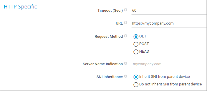 - Do not inherit SNI from parent device: Determine the SNI from the target URL as defined in the settings of this sensor.