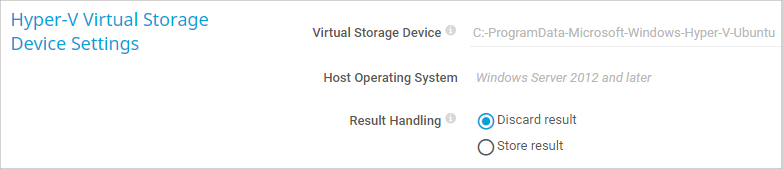 The Hyper-V Virtual Storage Device sensor monitors a virtual storage device that runs on a Microsoft Hyper-V host server via Windows Management Instrumentation (WMI) or Windows performance counters, as configured in the Windows Compatibility Options of the parent device.
