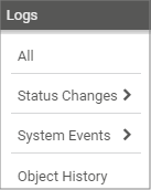 Click to show log information for all objects in your configuration. Hover over Logs to show other options.