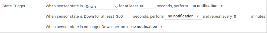 - Down: Trigger a notification if a sensor changes to the Down status.