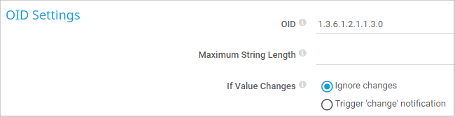 Define the maximum length of the string that PRTG receives from the SNMP object at the OID. If the string is longer than this value, the sensor shows the Down status. Enter an integer value or leave the field empty.