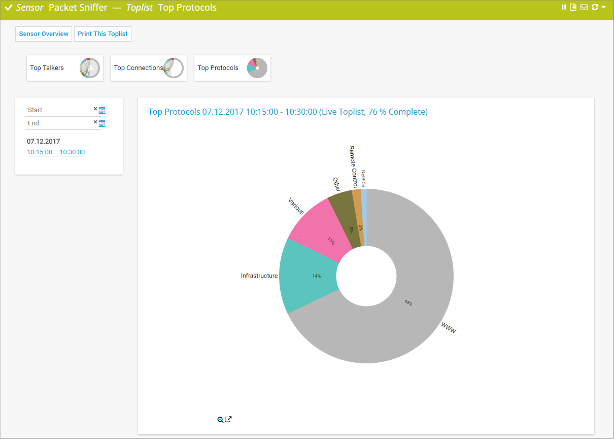 Toplist Top Protocols for a Packet Sniffer Sensor