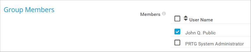 If your Active Directory contains more than 1,000 entries in total, PRTG displays an input field instead of a dropdown menu. This is for performance reasons. In the input field, you can only enter the name of the user group in your Active Directory. PRTG then automatically adds the domain name prefix.